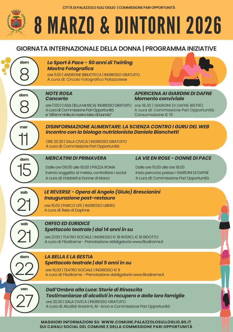 Dettagli di ogni singola iniziativa sul Calendario Eventi sul sito del Comune di Palazzolo sull'Oglio