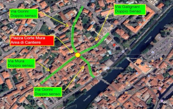 • doppio senso di marcia in via Mura nel tratto compreso tra via Cavour e piazza corte Mura.